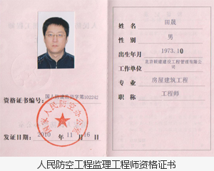 田晟:1973年10月生,1997年7月畢業于北京建筑工程學院土木工程系,本科學歷,高級工程師,全國注冊監理工程師,人民防空工程監理工程師,全國環境監理工程師,項目管理師。主管經營合約部。
