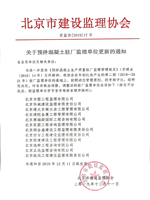 我公司進入預(yù)拌混凝土駐廠監(jiān)理單位名錄